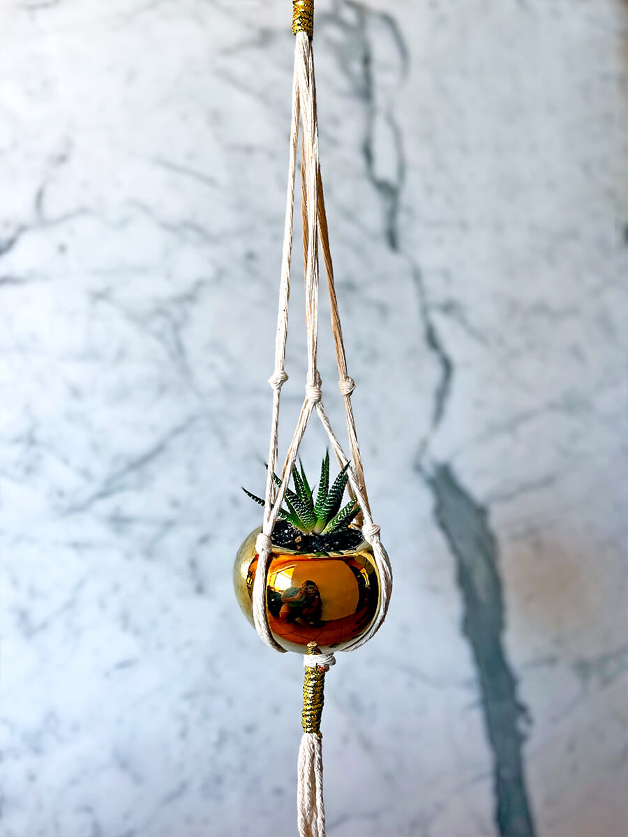 Where elegance meets earth. This radiant gold planter, suspended in a cotton rope hanger wrapped with shimmering thread, holds a living succulent — a symbol of quiet strength and luminous peace. Perfect for grounding energy with a touch of glam. Perfect for your favorite human, whether it’s Mom, Aunt, Friend, or Love!Includes:1 x Joy Republic Gold Plant Vase & Succulent Plant1 x Joy Republic Cotton Macramé Plant Hanger with Gold Detail* Beautifully packed in an eco-friendly kraft gift box, a themed sticker on the outside of the box, and a handwritten note inside. Beautifully finished off with Ribbon! How this gift gives back:This gift set supports community businesses, choosing to keep it local and lekker! They are all passionate about job creation, breaking the cycle of poverty, and building into the community around them. PLEASE NOTE:For multiple box orders to one address and hospital or retail shop deliveries an adjusted courier fee will be charged.