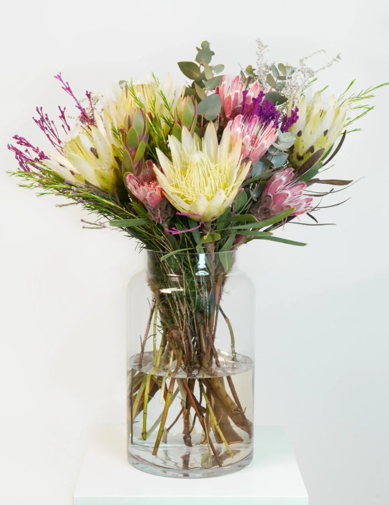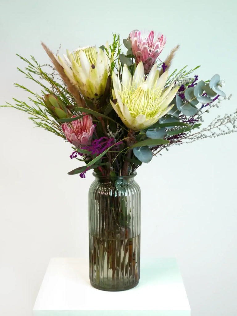 This striking protea and fynbos arrangement has been created in honour of South Africa's phenomenal women this Women's Day. It combines proteas, pincushions, eucalyptus and fynbos to create a powerful beauty. It's the perfect vase arrangement to send to the strong women in your life.
