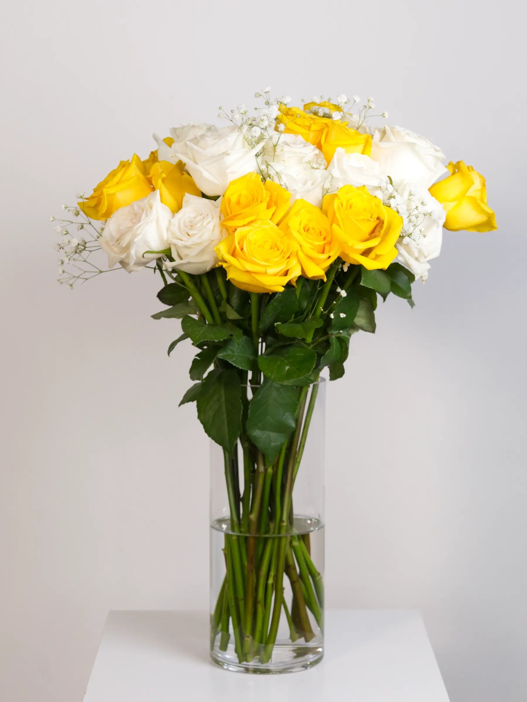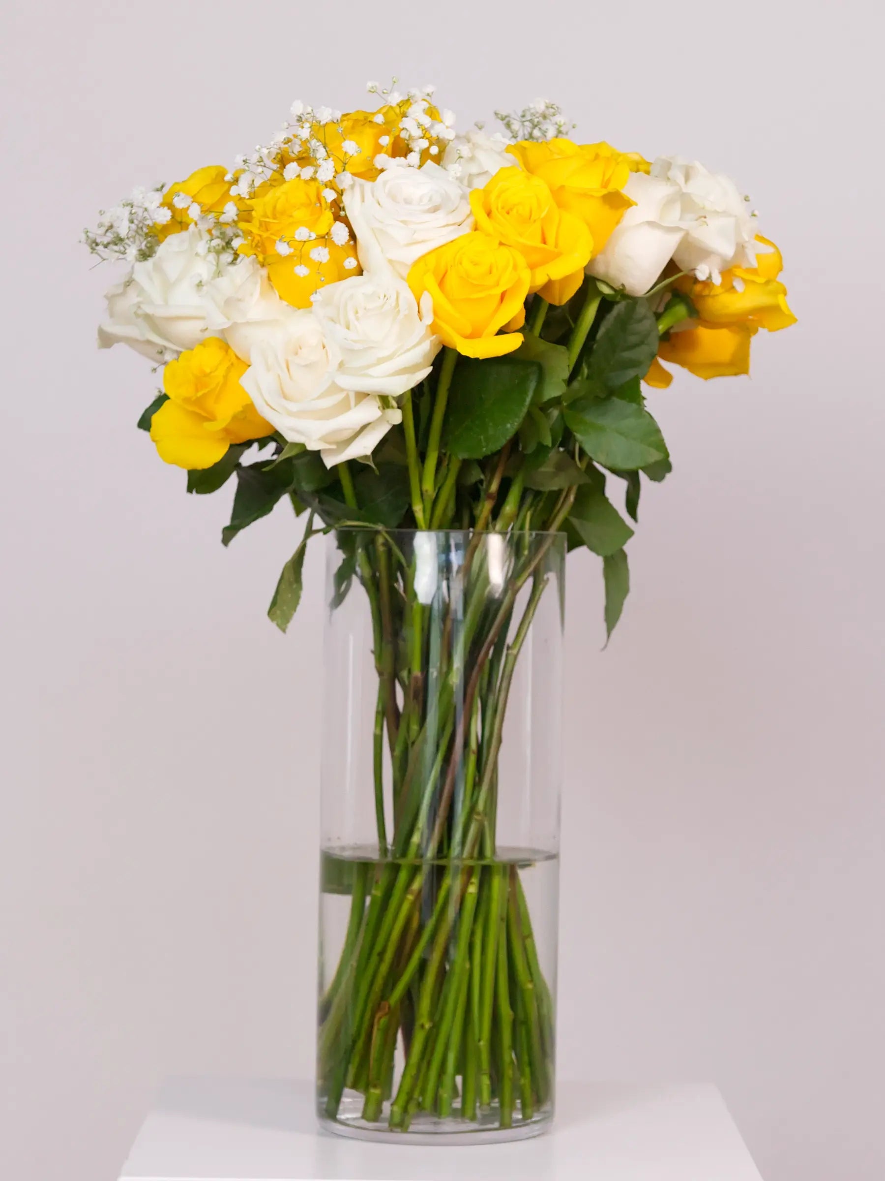 Sterkte is an Afrikaans word that carries real weight. It means strength, courage, and best wishes all at once, and it is what South Africans say when someone they care about needs to hear it most. This arrangement brings that sentiment to life through yellow and white roses paired with gypsophila, a combination chosen to reflect hope, warmth, and quiet resilience.When words feel insufficient, flowers often say what a message cannot. Sending the Sterkte arrangement is a way to remind someone that they are held in your thoughts - a tangible gesture that stays in their home long after the moment has passed.This is the arrangement to send when a friend receives a difficult diagnosis, faces a bereavement, or is navigating a period of real uncertainty. It suits anyone who needs a reminder of their own strength, whether that is a close friend, a family member, or a colleague going through a hard time.Bloomable connects you with a trusted network of local florist artisans across South Africa who hand-craft every order with genuine care. Our reliable delivery service makes it straightforward to show up for the people who matter, no matter the distance.Order the Sterkte arrangement today and let your support speak for itself.