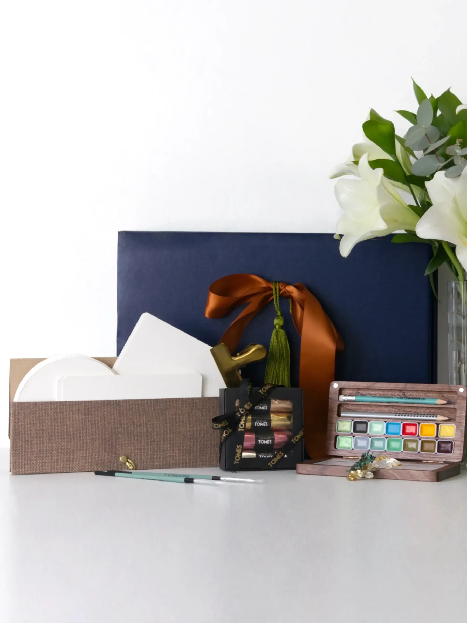 The Watercolour Moments Creative Gift Set is a beautifully curated box designed to inspire artistic expression and offer a calming, hands-on escape. A must-have for art lovers, curious beginners, or anyone craving mindful relaxation, this premium gift set blends quality watercolour tools with a bespoke touch for unforgettable gifting.